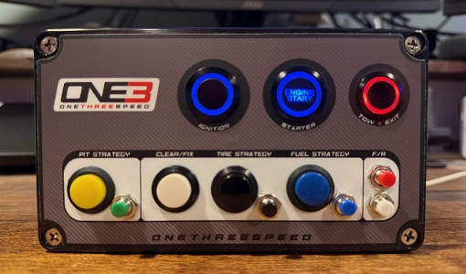 ONE3 Speed owner Chris Papa was browsing for the perfect button box for his own needs after struggling with fumbling through keyboard commands and voice commands for car management in races. Quite frankly, the "perfect box" didn't exist, so he decided to make his own. He started with testing button options placed in cardboard boxes, which migrated to Lexan , and continued to experiement and evaluate until eventually landing on our eventual button box build.
