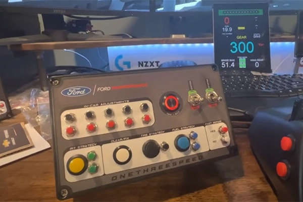 The pit commands are built for complete race control. The pattern of the buttons is intended to make it easy to grab in a pinch, and can even be used easily by the VR racers out there for an ergonimic feel and no-look use.