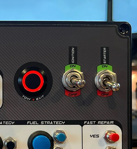Match the realism with the high-quality switches for your Ingition and Starter for your sim racing rig. These heavy duty switches match realistic functionality with a locking ignition switch and a momentary Starter switch.